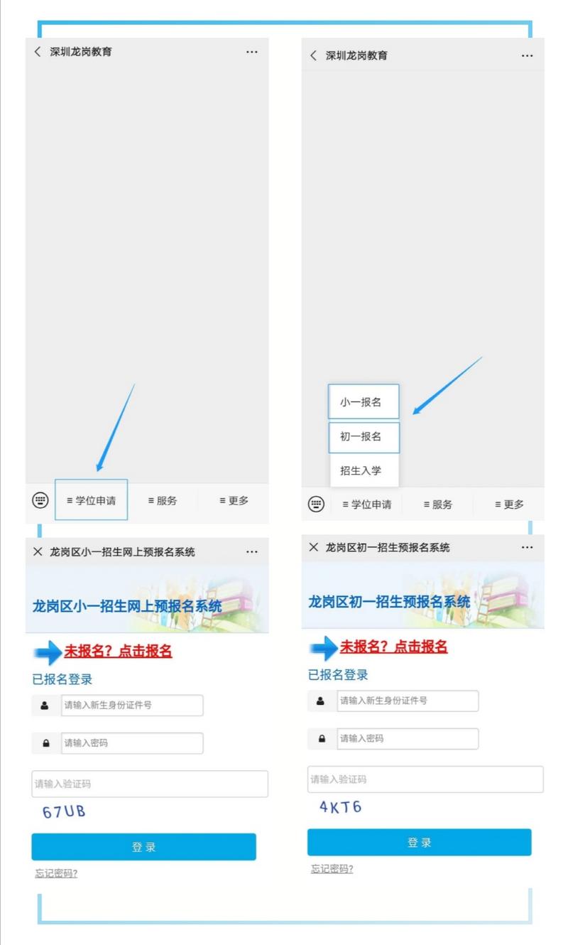 和以往一樣,家長可以登錄龍崗政府在線網(wǎng)站的“龍崗區(qū)教育局基礎(chǔ)教育科”頁面(http://www.lg.gov.cn/bmzz/zs/)進行學(xué)位申請報名,不過今年,家長多了一個更加便捷的報名方式,通過關(guān)注“深圳龍崗教育” 微信公眾號,在“學(xué)位申請”欄目中點擊“小初一報名”,憑適齡兒童、少年身份證號進入,填寫學(xué)位申請信息,填報學(xué)校志愿。確認(rèn)信息無誤后直接保存,同時產(chǎn)生申請學(xué)位的流水號,即完成網(wǎng)上預(yù)報名。