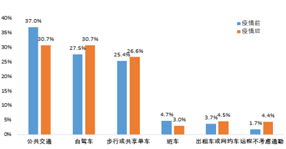市民出行采用公共交通比例有所下降,更私密、更獨立的出行方式成為偏好選擇