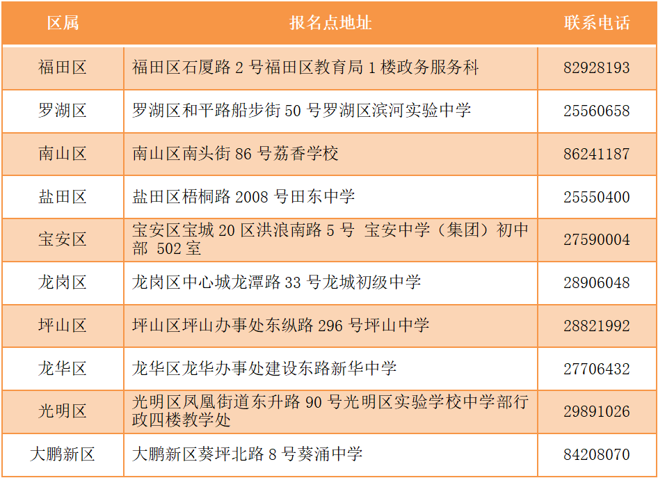 中考社會(huì)報(bào)名點(diǎn)一覽表 深圳各類考生具體報(bào)考范圍、各類升學(xué)資格申報(bào)所需條件和材料以及相關(guān)報(bào)名要求,考生可通過深圳市招生考試辦公室官網(wǎng)(zkb.sz.gov.cn)及官方微信公眾號(hào)(深圳市招生考試辦公室)查閱,市招考辦也將第一時(shí)間通過上述渠道發(fā)布各類中考資訊。