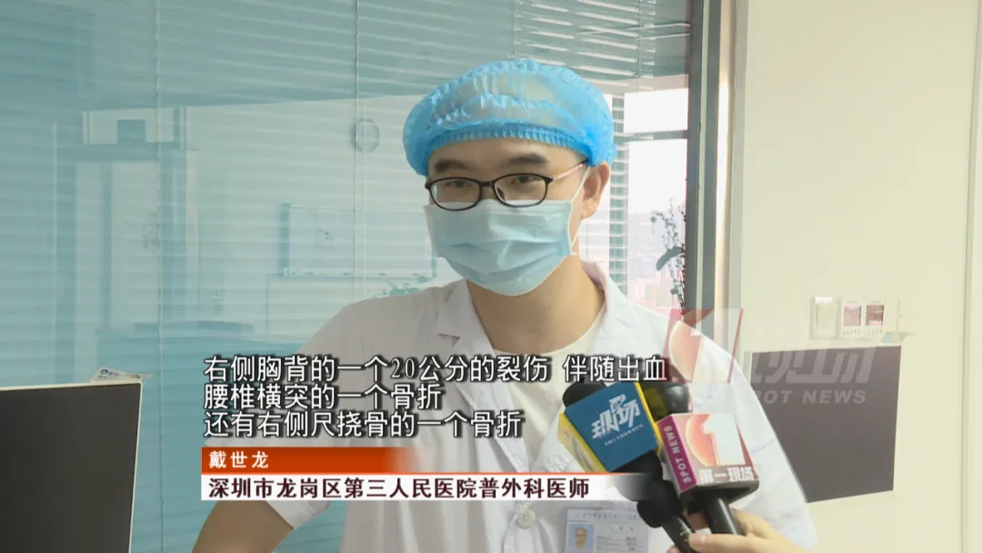 隨后,黃師傅被送往龍崗區第三人民醫院救治。主治醫生戴世龍表示,黃師傅沒有生命危險,但是至少需要三個月才能痊愈。