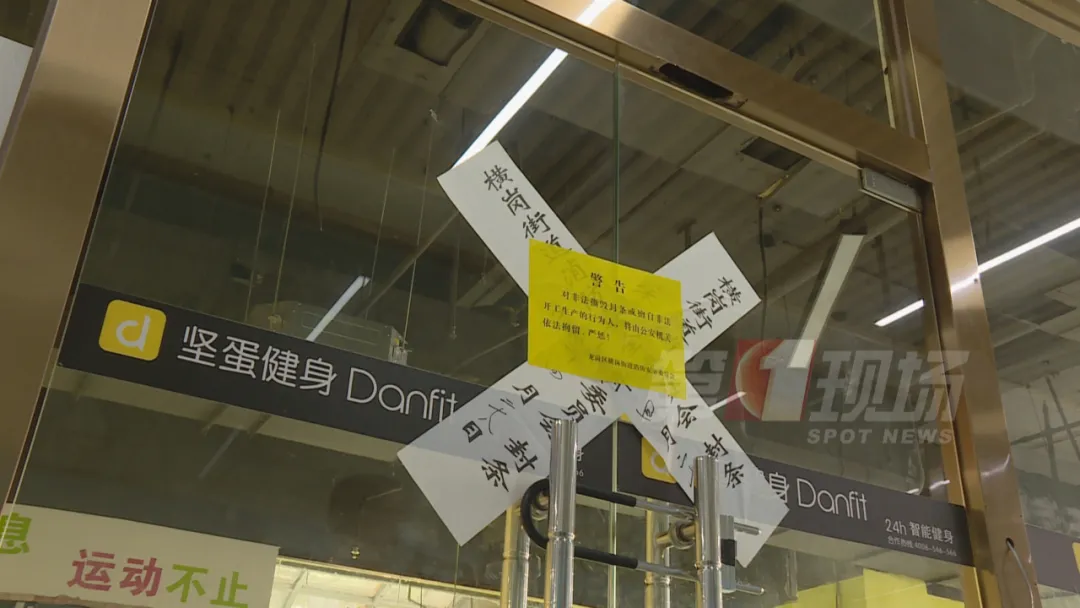 記者來到事發的新世界廣場三樓,發現通往天臺的大門已經上鎖,而樓梯過道則是堆滿了裝修器材,裝修工人墜落的健身房區域已被貼上封條。