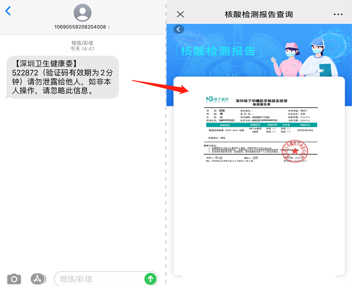 ④進行短信驗證后,即可查詢15天內(從5月11日起)的核酸檢測報告