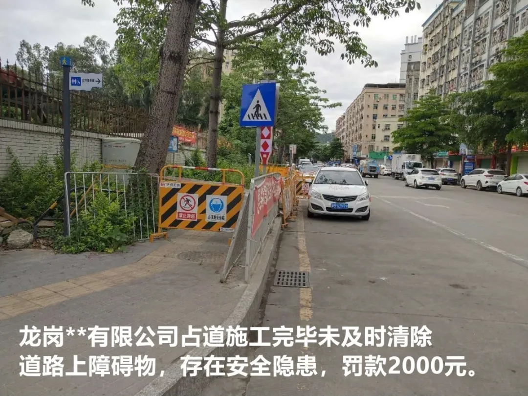 對(duì)該施工單位在橫坪連接線路段占道施工導(dǎo)致人行道不連貫、機(jī)非沖突,存在較大交通安全隱患的行為,龍崗交警依法處罰10000元并責(zé)令立即整改。