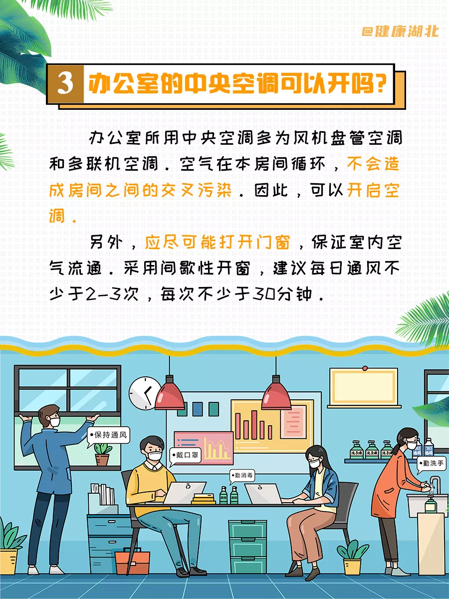 ③開空調時暫時不要關閉門窗,讓空氣流動一段時間以后,再關閉門窗。使用中央空調的時候應該提高新風率,并保持一定的空氣流通和自然通風。