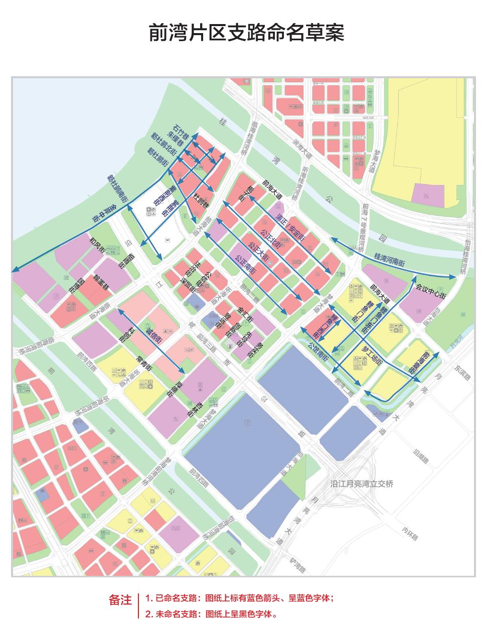 其中,桂灣片區共約37條(包括已命名支路13條,本次擬定支路命名草案24條),前灣片區約39條(包括已命名支路20條,本次擬定支路命名草案19條),媽灣片區共61條(包括已命名支路12條,本次擬定支路命名草案49條)。同時,將代表前海門戶通道的主干道“前灣一路”更名為“前海大道”。