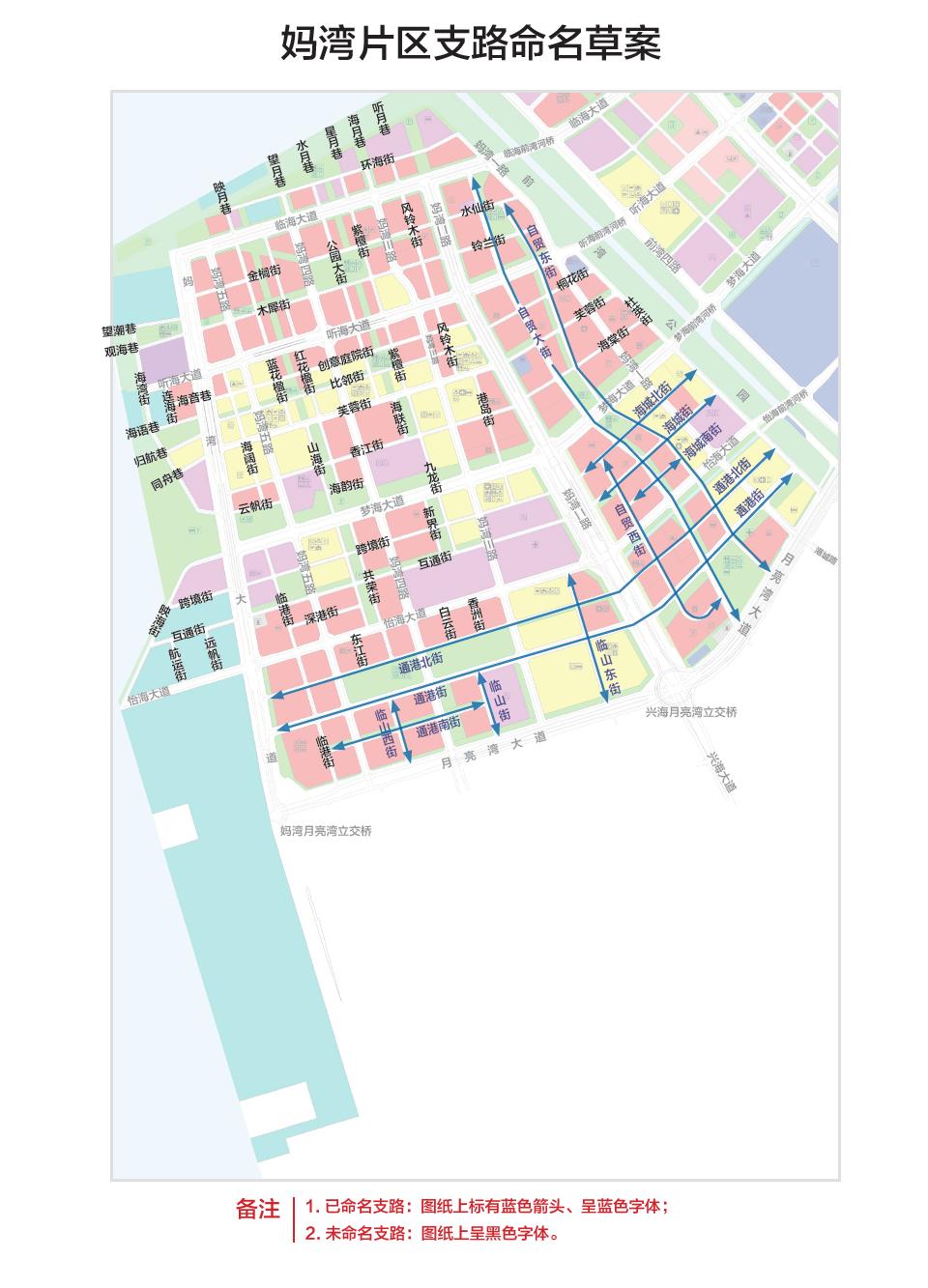 據悉,2013年市政府同意的《前海深港現代服務業合作區地名規劃》,確定了前海15平方公里范圍內桂灣、前灣、媽灣三個片區名稱,臨海大道、聽海大道等主次干道名稱,橋梁、立交設施名稱,以及濱海公園、濱海休閑帶等名稱。未覆蓋前海15平方公里范圍內支路名稱。本次命名草案按照相關法規文件,結合前海桂灣、前灣、媽灣各片區的規劃定位、功能布局以及建設情況,針對三大片區和重要功能區功能、項目布局等特征,對前海15平方公里支路進行了全覆蓋命名。