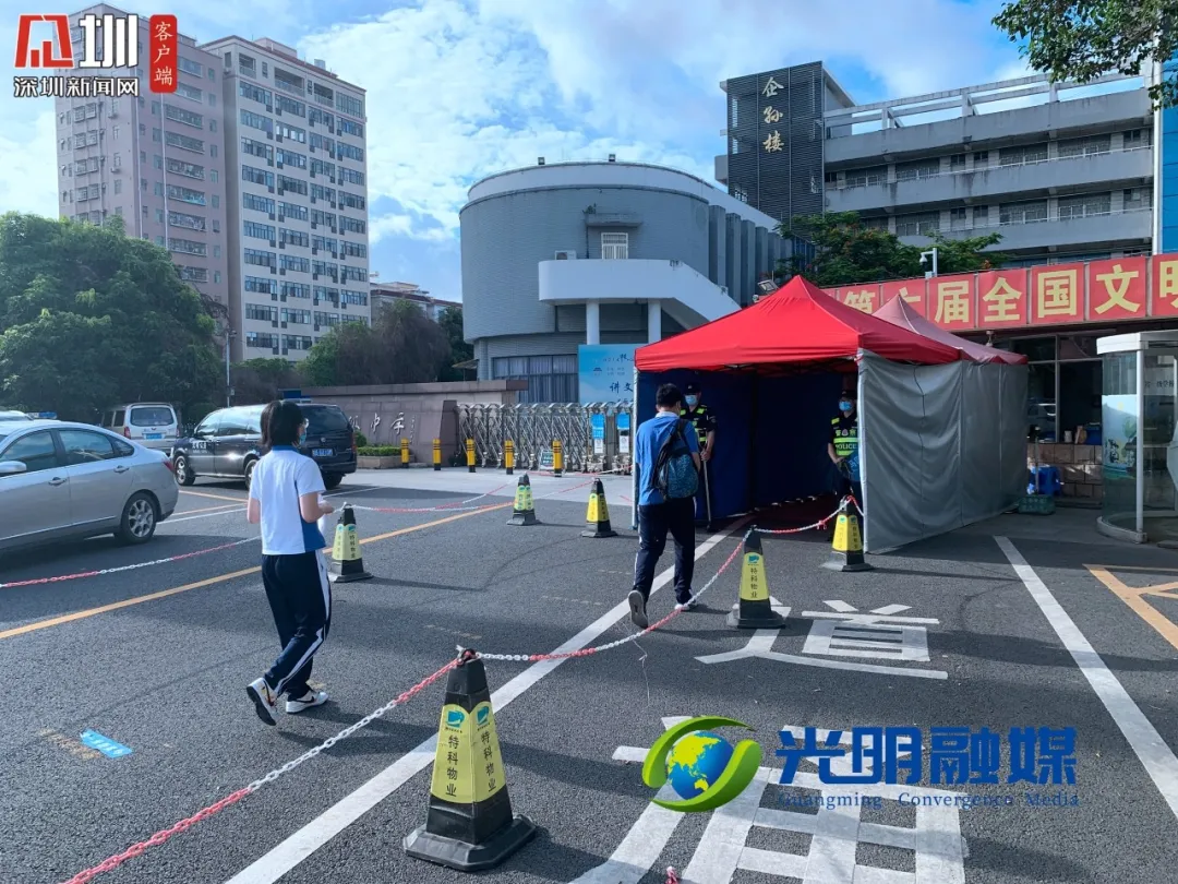 早上七點十五分,記者來到光明區高級中學考點,學生已經開始有序走入考場。