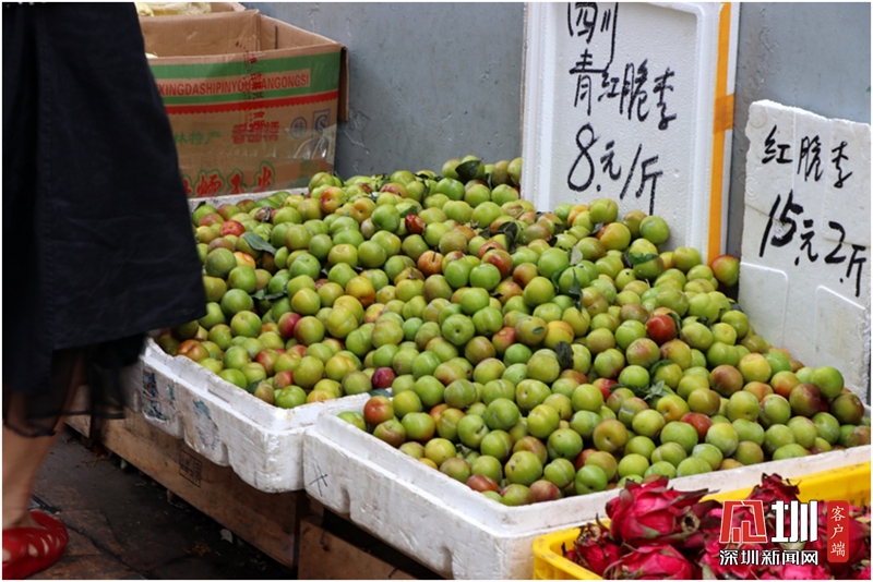 7月8日上午8時,記者在深圳福田農批市場看到,已經有不少市民早早趕到市場選購新鮮的瓜果蔬菜。市場內不斷有貨車開進開出,各店家都在忙著打理水果,叫賣;很多人相信,早上的水果最新鮮,光是看看水果攤位上堆成小山的水果就很愉悅:紅的荔枝,黃的橙子,青的脆李……采購的市民細細挑選貨比三家,滿載而歸,好一派有滋有味。