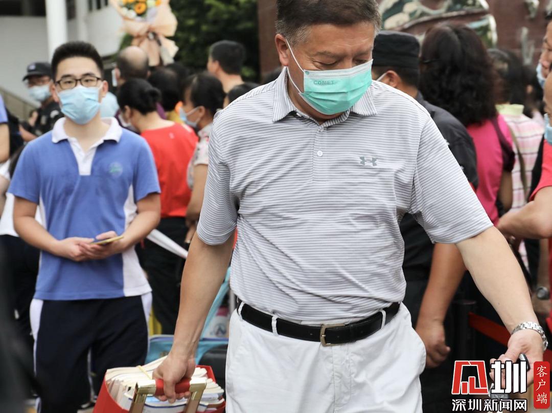 深圳高級中學考點外家長看見孩子笑臉相迎。
