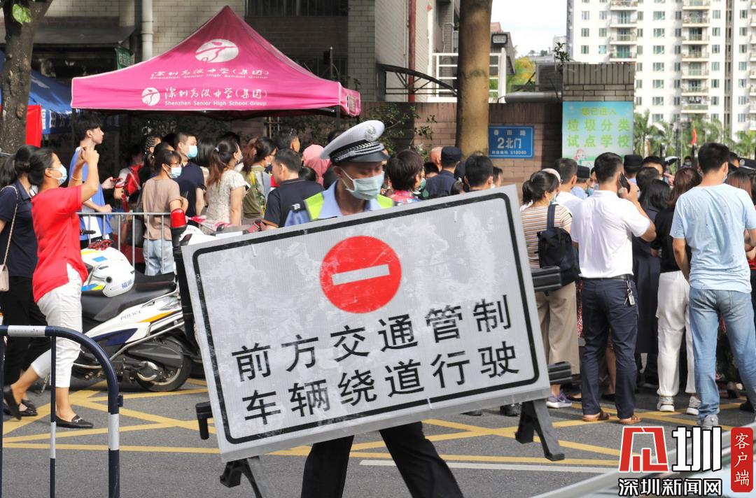 深圳高級中學考點外,福田交警加強周邊道路巡邏管控。