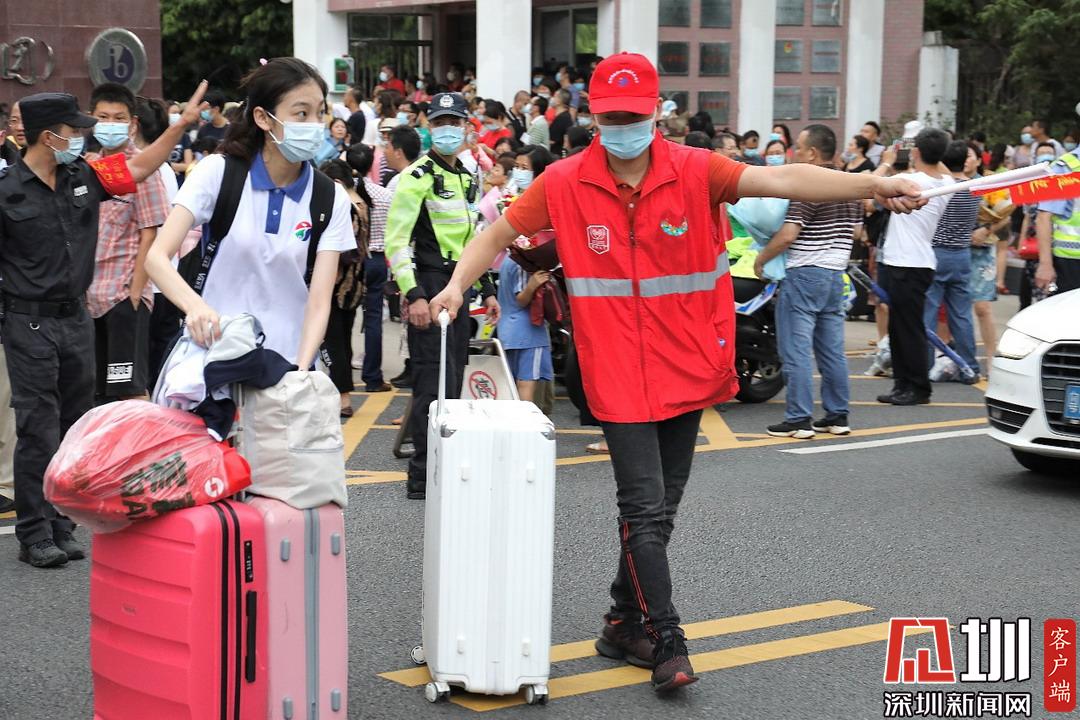 深建運協義工幫助考生提拿行李,助力深圳交通文明。