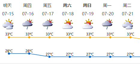 預計15-17日多云,有短時(雷)陣雨;18-20日天氣悶熱,局地偶有短時陣雨。