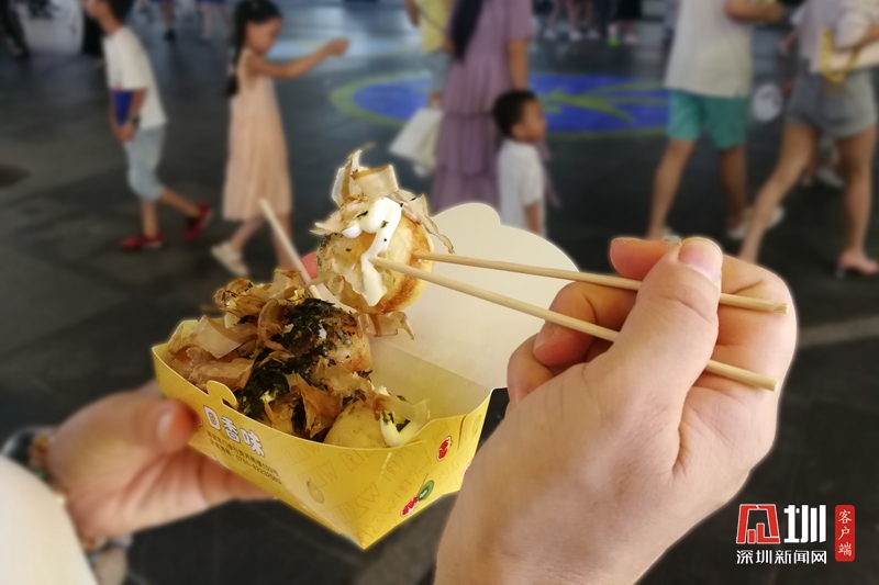 一位食客手中的章魚小丸子。