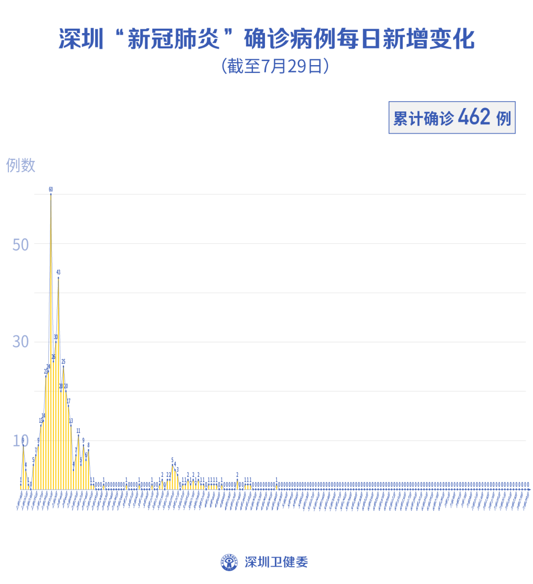 截至7月29日24時,深圳累計報告新冠肺炎病例462例。