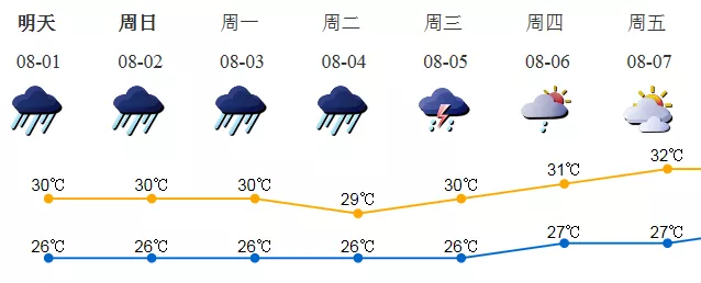 7月31日至8月2日我市有暴雨,東部、南部有大暴雨,沿海、高地和海區最大陣風8-10級。3-5日仍有暴雨,局部大暴雨。