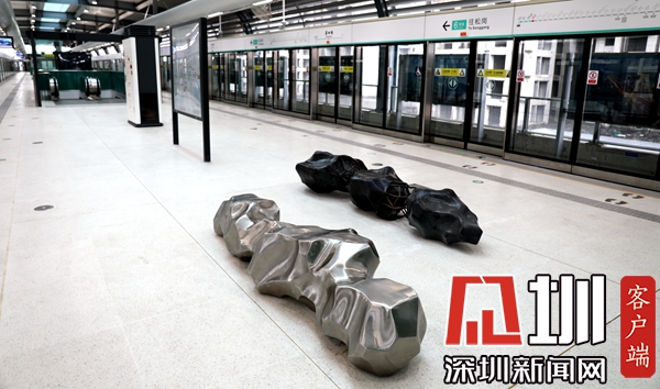 該站文化藝術品采用金屬鍛造而成,作品選用中國傳統經典的“景石”造形,進行解構、重組的藝術處理。