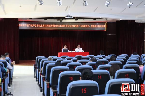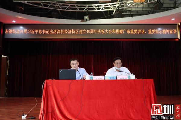 見圳客戶端·深圳新聞網(wǎng)11月26日訊(記者 劉晨 通訊員 魏官明 陳惠冰)11月26日下午,深圳市羅湖區(qū)東湖街道舉行習(xí)近平總書記出席深圳經(jīng)濟特區(qū)建立40周年慶祝大會和視察廣東重要講話、重要指示精神宣講報告會,活動特邀羅湖區(qū)委宣講團成員、區(qū)發(fā)展研究中心黨組書記、主任王西星作主題宣講。 街道黨政領(lǐng)導(dǎo),街道各辦、中心業(yè)務(wù)負(fù)責(zé)人,各社區(qū)黨委書記、副書記,股份公司董事長,街道機關(guān)各黨支部及各社區(qū)黨建組織員、黨員共100余人參加了宣講活動?;顒佑山值傈h工委副書記、人大工委主任謝統(tǒng)敏主持。