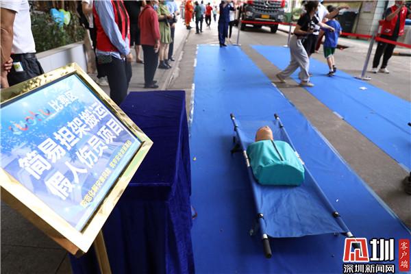 活動現(xiàn)場,宣傳教育區(qū)、技能展示區(qū)、互動體驗區(qū)、趣味比賽區(qū)等人頭攢動,不時傳來陣陣贊嘆聲、歡呼聲。來自羅湖區(qū)森防大隊、消防救援大隊的隊員們,向群眾講解無人機、液壓切割機、消防機器人等救援設(shè)備、裝備,演示森防油鋸速切木頭、風力滅火機吹磚頭等等比武項目;居民體驗使用干粉滅火器;美國心臟協(xié)會AHA導(dǎo)師向居民示范教學心肺復(fù)蘇急救。趣味比賽區(qū)專門設(shè)置了防汛沙袋搬運、疊放競速、簡易擔架搬運假人傷員、4*20M消防水帶接力等獨具防災(zāi)減災(zāi)特色的趣味比賽項目,吸引了眾多社區(qū)居民積極參與。