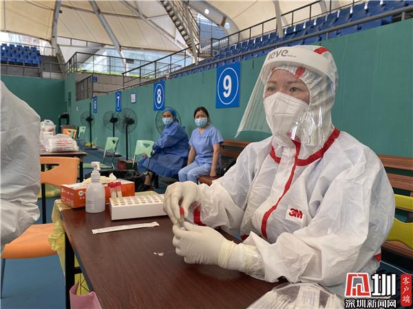 “根據當前疫情防控工作要求,結合羅湖區實際情況,我們在28日啟用去體育館這個臨時采樣點,現場我們可以看到整個采樣工作是很有秩序的,因為我們在每個時間段安排不同的人群進行采樣,所以不會出現排隊擁擠等情況。”羅湖區衛健局公共衛生和職業衛生科科長江正談道,羅湖成立了一支擁有1200人的平戰結合應急采樣隊,隨時為疫情防控工作做好備戰準備,一旦有需要,隨時就可以投入戰斗。“現在這個臨時檢測點每天的采樣量大概在5000個左右,我們很有信心,能夠打贏這場戰‘疫’。”江正說。