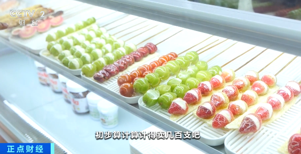 天津某糖葫蘆店店主:尤其年輕人喜歡吃奶皮子糖葫蘆,初步算一天大概賣幾百支。
