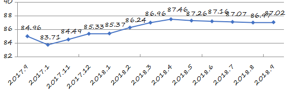 國家統計局深圳調查隊編制9月份深圳市城市交通文明指數為87.02分,比上月增加0.05分,比上年同期增加2.06分;深圳市城市交通文明進步指數為-0.05 %。