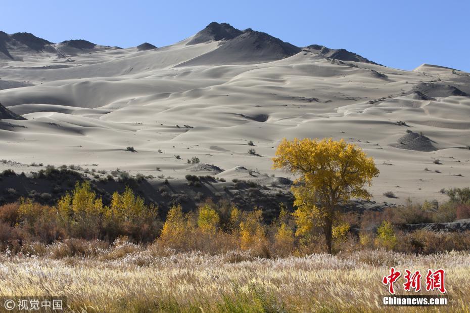 中國青年網北京10月9日電 2018年10月7日至8日,內蒙古自治區阿拉善盟額濟納旗,地處巴丹吉林沙漠。額濟納河兩岸壯觀的胡楊林堪稱大漠的一顆綠色明珠,每年深秋時節的第一場秋霜過后,大片的胡楊樹葉由綠變黃,一眼望去,陽光下金色的樹葉襯著湛藍的天空于風中婆娑起舞,鮮明的影調,亮麗的色彩,令人流連忘返。