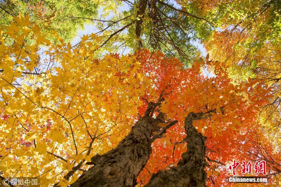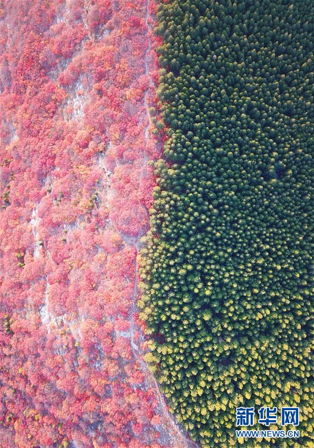 平分秋色! 山東濟南楔子山現“一山雙色”景觀