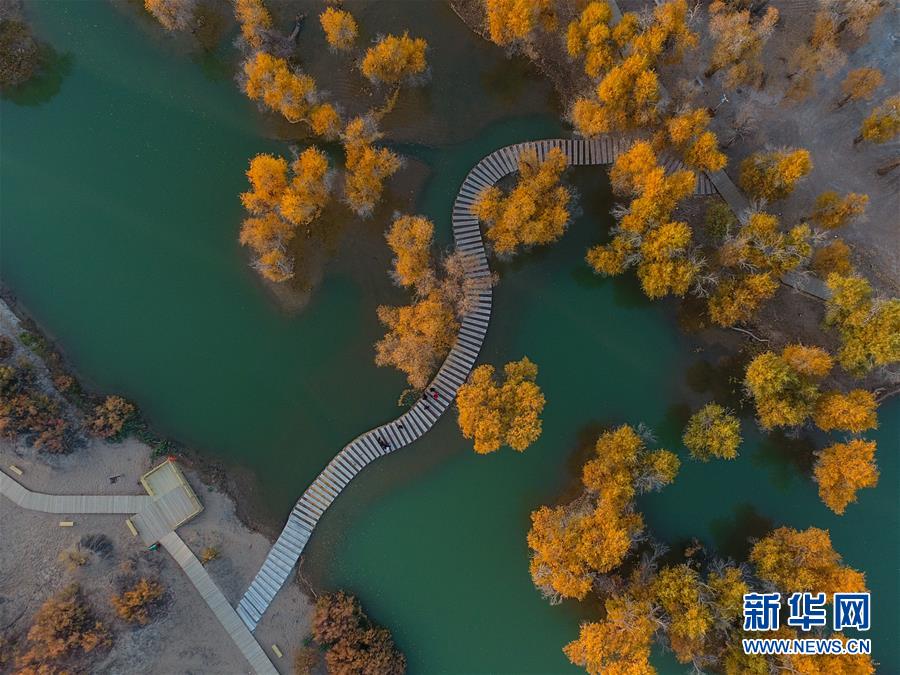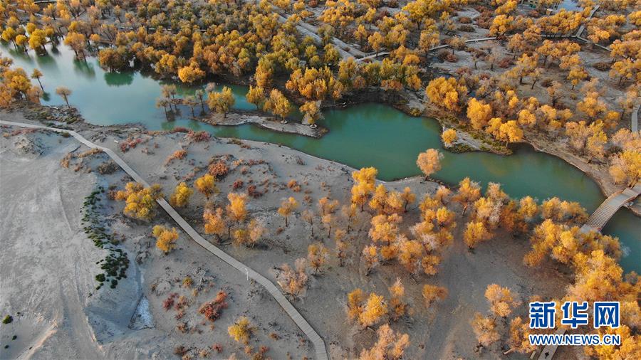 10月中旬以來,新疆天山以南的塔里木河流域胡楊葉片由綠變黃,如同披上了金色外套。 2000年起,塔里木河19次向下游生態輸水,累計下泄生態水76.2億立方米。多年的持續輸水結束了塔里木河下游河道連續斷流30年的歷史,緩解了流域生態退化的被動局面,塔里木河下游動植物物種顯著增加、水環境得到有效改善。