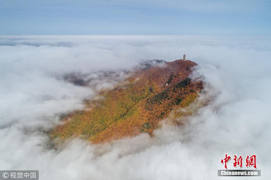 10月6日晨曦到中午,黑龍江雞西,中俄界湖興凱湖北岸蜂蜜山國家地質公園,再現云海為長假收關。 圖片來源:視覺中國