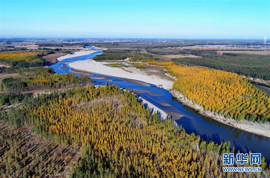 這是河北省樂亭縣境內的灤河秋色(11月6日無人機拍攝)。