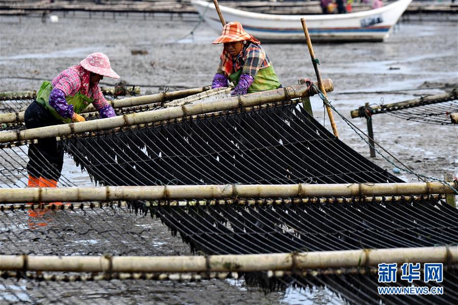 10月24日,福建莆田蔣山村村民在收獲紫菜。 新華社記者張國俊 攝