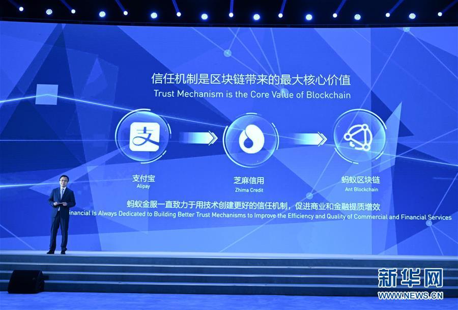 11月7日,螞蟻金服首席執行官井賢棟在介紹螞蟻金服金融級商用區塊鏈平臺。新華社記者陳曄華攝