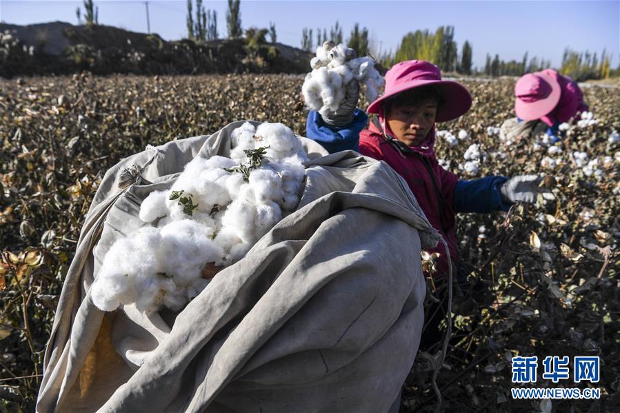 10月21日,棉農在棉田采收棉花。目前,河北省南宮市40萬畝棉花迎來采收季。新華社記者朱旭東攝