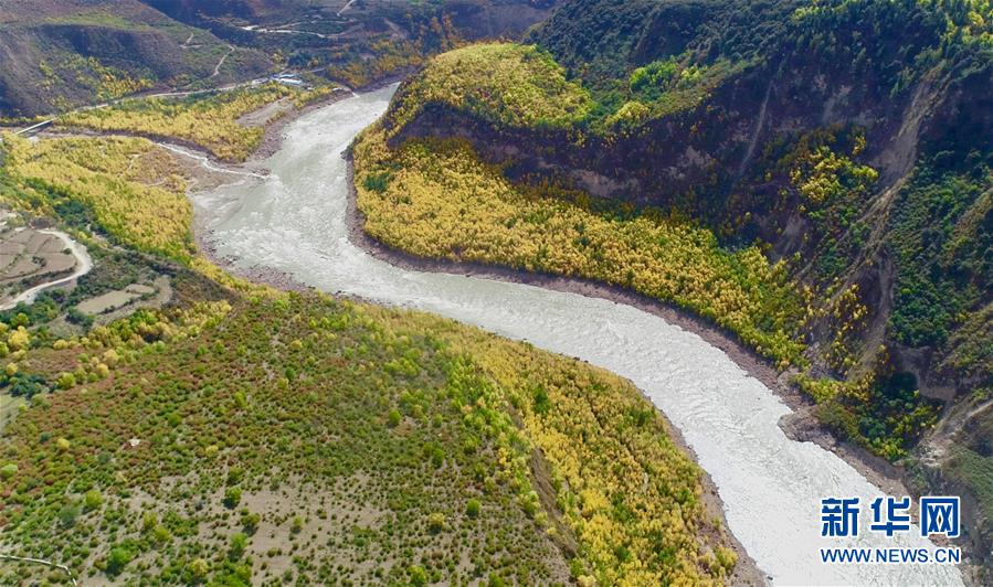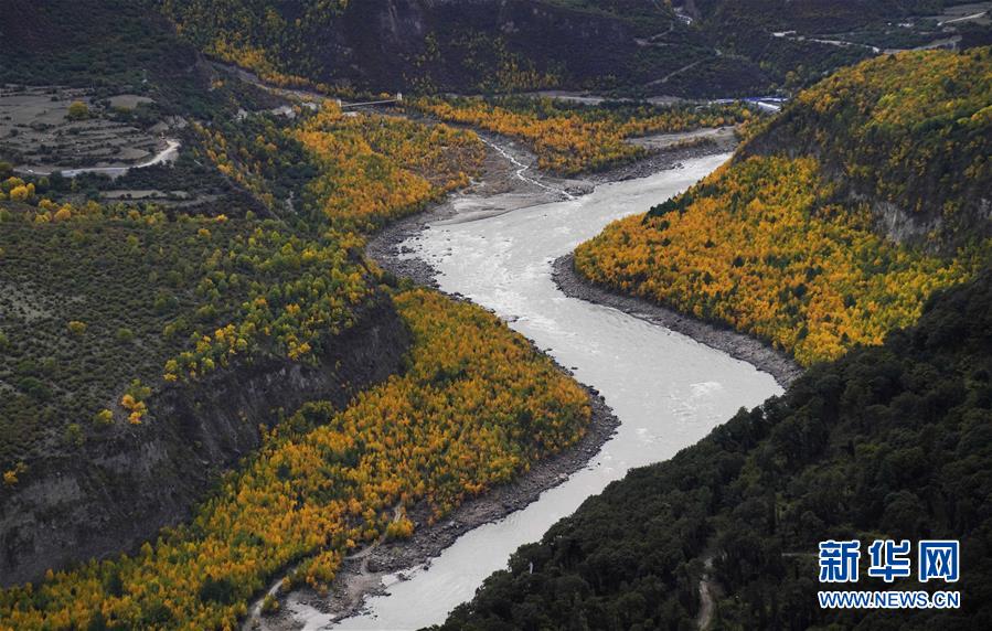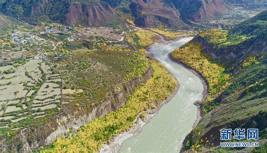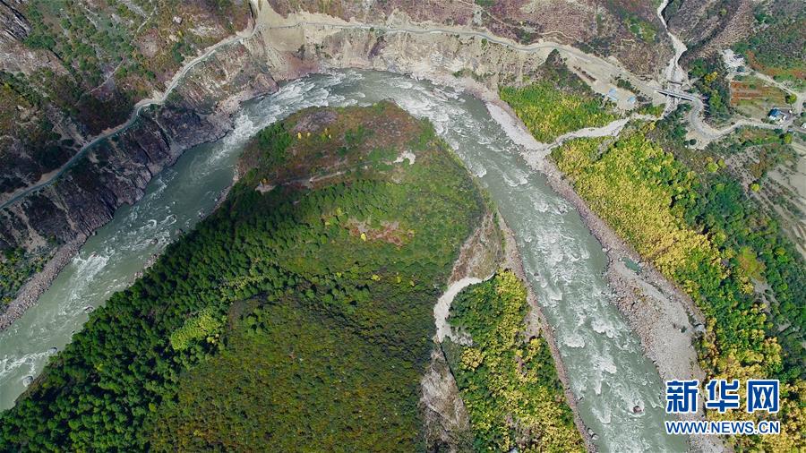 這是10月21日在西藏米林縣派鎮達林村拍攝的雅魯藏布江(無人機拍攝)。