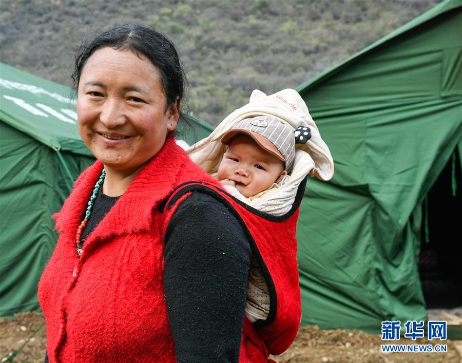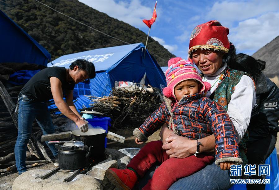 這是在距波羅鄉政府約6公里的一處臨時安置點內拍攝的群眾(10月14日攝)。 新華社記者 劉東君 攝