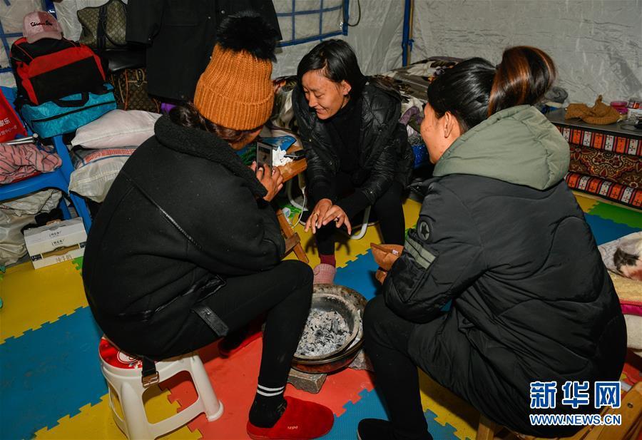 在西藏昌都市江達縣波羅鄉康扎西安置點,群眾在帳篷內取暖(11月11日攝)。 西藏自治區江達縣波羅鄉康扎西安置點,離波羅鄉政府直線距離約3公里,位于一處地勢開闊平緩的山谷中,比堰塞湖水面高出100多米。10月11日金沙江白格段山體滑坡發生后,當地就在這里設立了安置點,安置附近受災群眾。 新華社記者 劉東君 攝