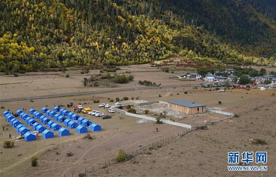 這是西藏昌都市江達縣波羅鄉一臨時過渡安置點(10月14日無人機拍攝)。