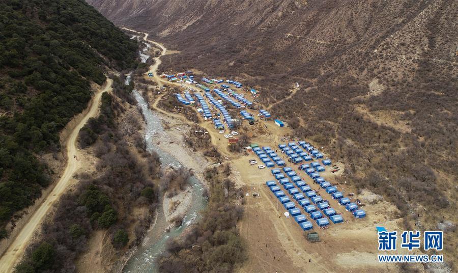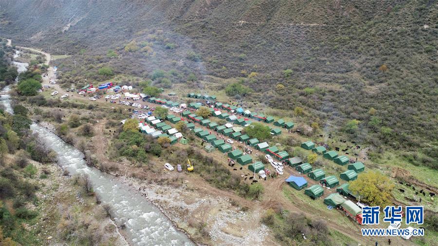 10月19日拍攝的在米林縣派鎮尼定村搭建的安置點。 記者從西藏自治區林芝加拉村雅魯藏布江堰塞湖災情應急搶險工作第二場新聞發布會上獲悉,19日13時30分,雅魯藏布江米林縣堰塞體上游水位超過堰塞體,開始自然過流,上游水位正在緩慢下降。目前,各項搶險救援工作正在有序開展。 新華社記者 覺果 攝