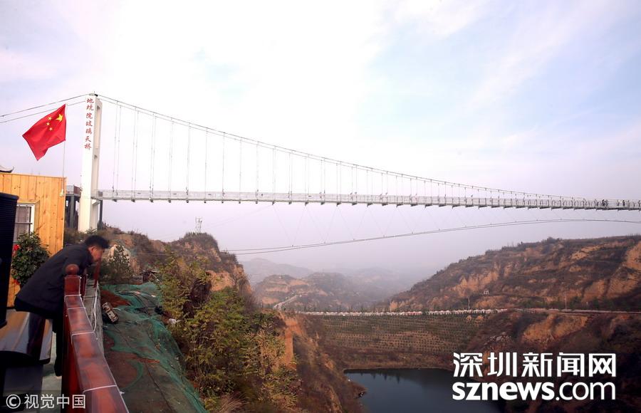 深圳新聞網訊 河南三門峽,位于陜州地坑院景區玻璃天橋。該項目橋梁總投資2600萬元,全長368米,寬3米,高108米,是目前河南省內最長的玻璃天橋,還將陸續對外開放夜景效果、聲光效果以及更多的體驗效果,逐步打造成整個豫西地區乃至全省的旅游打卡新地標。