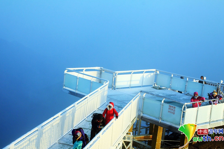 來過金子山的人都知道,對于金子山的天梯、云海、日出、冰雪、佛光念念不忘。游客走在玻璃天梯上,如同在云海中漫步,有騰云駕霧、翩翩欲飛的感覺。眺望著群山,欣賞著藍天白云。
