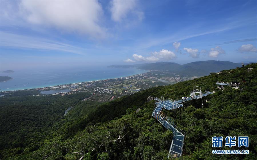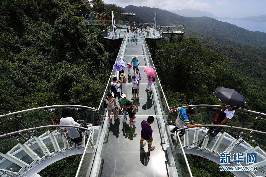 8月31日,游客在玻璃棧道上參觀游覽。近日,位于海南省三亞市亞龍灣熱帶天堂森林公園的大佛石全海景玻璃棧道開始正式營業。凌空而建的玻璃棧道全長400米,游客可將亞龍灣的美景盡收眼底。新華社記者郭程攝