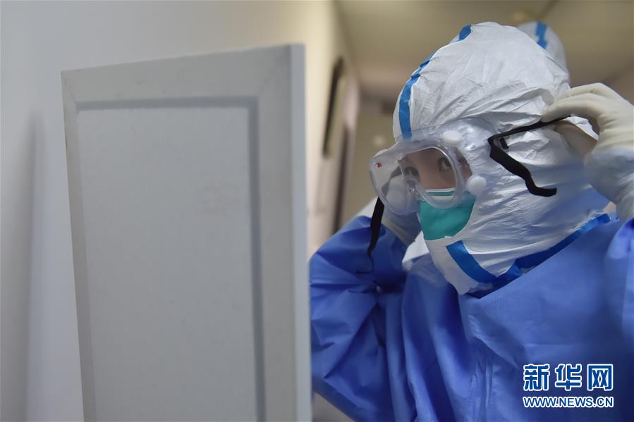 5月11日,在北京地壇醫院感染二科病房外,護士劉印懷穿戴防護設備準備進入病房。北京地壇醫院是北京市收治新冠肺炎患者的定點醫院之一,醫院的醫護人員一直奮戰在抗擊疫情的一線。在國際護士節前夕,記者前往北京地壇醫院,記錄下抗疫一線護士的日常工作狀態。新華社記者彭子洋攝