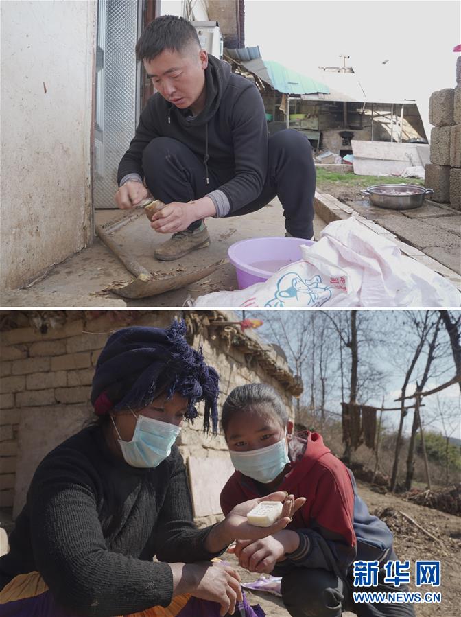 拼版照片上圖:在四川省涼山彝族自治州美姑縣瓦古鄉(xiāng),彭楊在削土豆皮,準(zhǔn)備制作土豆手工皂(3月10日,新華社記者吳光于攝);下圖:在瓦古鄉(xiāng),15歲的沙馬也曲(右)和她的媽媽拿到了彭楊制作的土豆手工皂(3月10日,新華社記者薛晨攝)。四川省涼山彝族自治州美姑縣瓦古鄉(xiāng)扶貧干部彭楊所在的古覺村距鄉(xiāng)政府20公里,是美姑縣80個尚未脫貧村之一。他深知養(yǎng)成好的生活習(xí)慣,對當(dāng)?shù)孛撠氈陵P(guān)重要,所以他不僅督促老百姓疊被子、整理房間,幫當(dāng)?shù)氐暮⒆觽兿搭^、洗澡,還在疫情期間自制土豆手工皂分發(fā)給村民。彭楊說,疫情后準(zhǔn)備發(fā)動留守婦女生產(chǎn)手工皂,計劃在1年內(nèi)建成一個吸納瓦古鄉(xiāng)4個村村民的手工皂合作社。黨的十八大以來,我們堅持以人民為中心的發(fā)展思想,明確了到2020年我國現(xiàn)行標(biāo)準(zhǔn)下農(nóng)村貧困人口實現(xiàn)脫貧、貧困縣全部摘帽、解決區(qū)域性整體貧困的目標(biāo)任務(wù)。目前看,脫貧進度符合預(yù)期,成就舉世矚目。這些成績的取得,凝聚了全黨全國各族人民智慧和心血,是廣大干部群眾扎扎實實干出來的。脫貧摘帽不是終點,而是新生活、新奮斗的起點。新華社發(fā)