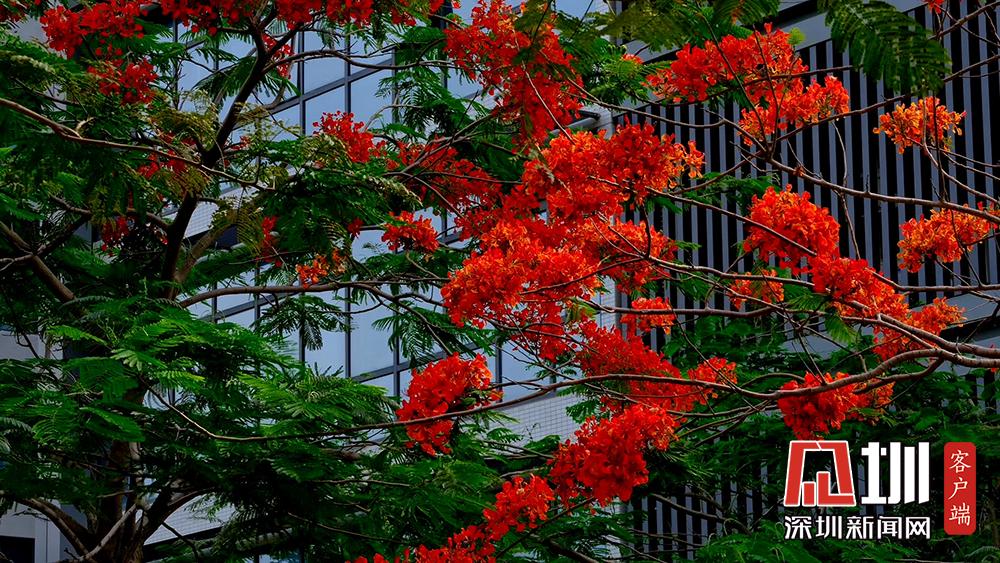 近日,深圳的鳳凰花進入花期。TCL科技園內,隨處可見盛開的鳳凰花。徐捷攝