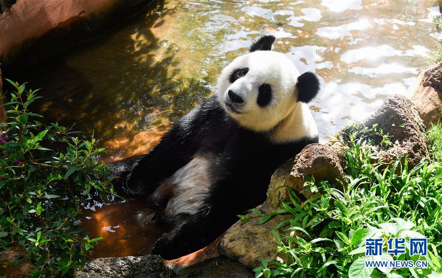 當日是“六一”國際兒童節,海南熱帶野生動植物園為園區內的大熊貓“貢貢”“舜舜”準備了美食和玩具,與小朋友們一同歡度節日。
