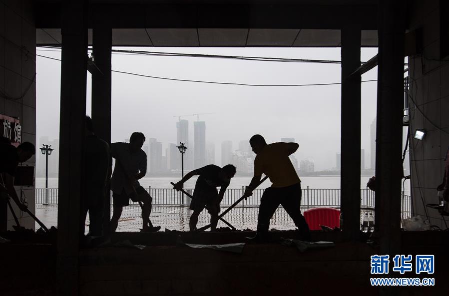 7月6日,工作人員在武漢龍王廟封堵閘口。記者6日從武漢市防汛抗旱指揮部辦公室獲悉,5日以來,武漢遭暴雨襲擊,全市多處路段漬水。至6日4時,長江漢口站超設防水位1.79米,漢江新溝站超警戒水位0.01米。鑒于當前水雨汛情和漬澇情況,武漢市從6日5時起,將排澇應急響應級別提升至Ⅱ級;從6時30分起,將防汛應急響應級別提升至Ⅱ級。新華社記者肖藝九攝