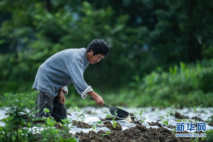7月6日,貴州省六枝特區郎岱鎮青龍村村民在田地里勞作。當日是小暑節氣,貴州省各地農民不誤農時,忙碌在田間地頭。新華社記者陶亮攝