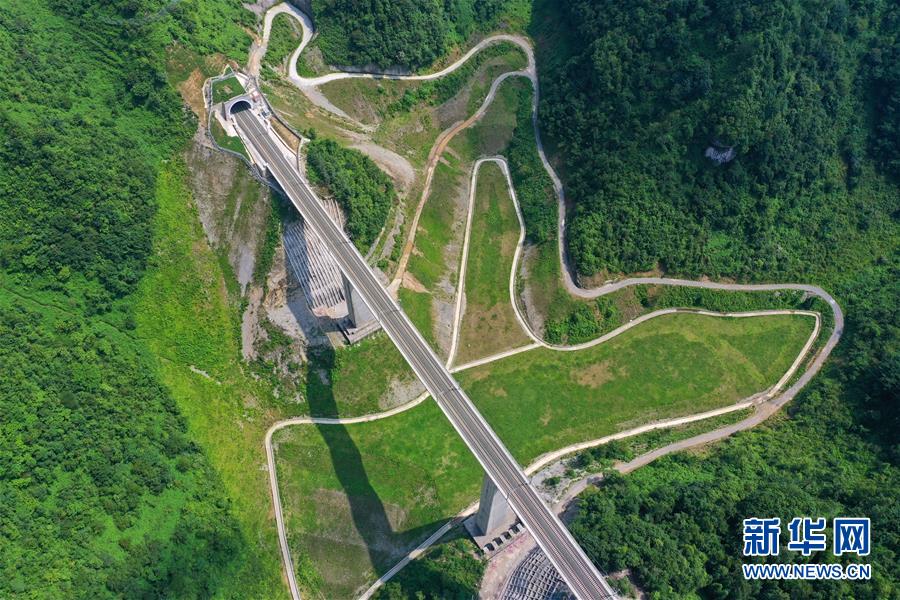 7月6日拍攝的安六鐵路彭家沖一號大橋附近的景觀(無人機照片)。當日,新建貴州安六鐵路(安順至六盤水)聯調聯試工作進入收尾階段,開通前的各項準備工作已基本就緒。安六鐵路線路全長約125公里,設計時速250公里,為國家I級雙線客運專線。建成投用后,貴陽至六盤水的鐵路旅行時間可從現在的3.5小時縮短為1小時左右,貴州省六盤水市將全面接入全國高鐵網。新華社記者劉續攝