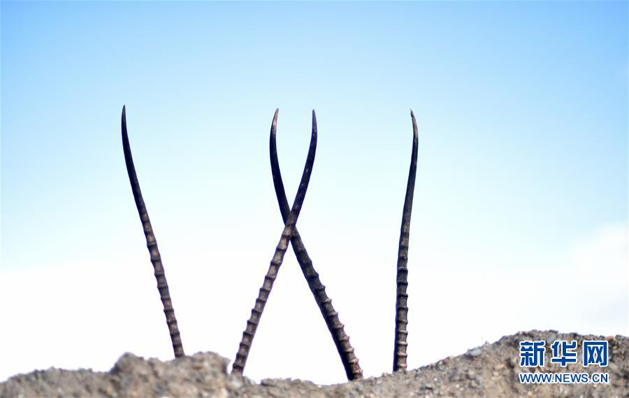 7月17日在西藏尼瑪縣榮瑪鄉附近拍攝的藏羚羊公羊的角。2000年,西藏羌塘自然保護區晉升為國家級自然保護區。20年來,經過西藏各級各部門的不懈努力,羌塘國家級自然保護區內的重點保護野生動物種群數量明顯增加,其中,藏羚羊種群數量由原來的5至7萬只,恢復到目前的15萬只以上。羌塘國家級自然保護區核心地帶的西藏尼瑪縣榮瑪鄉附近,目前就有近6萬只藏羚羊。新華社記者覺果攝