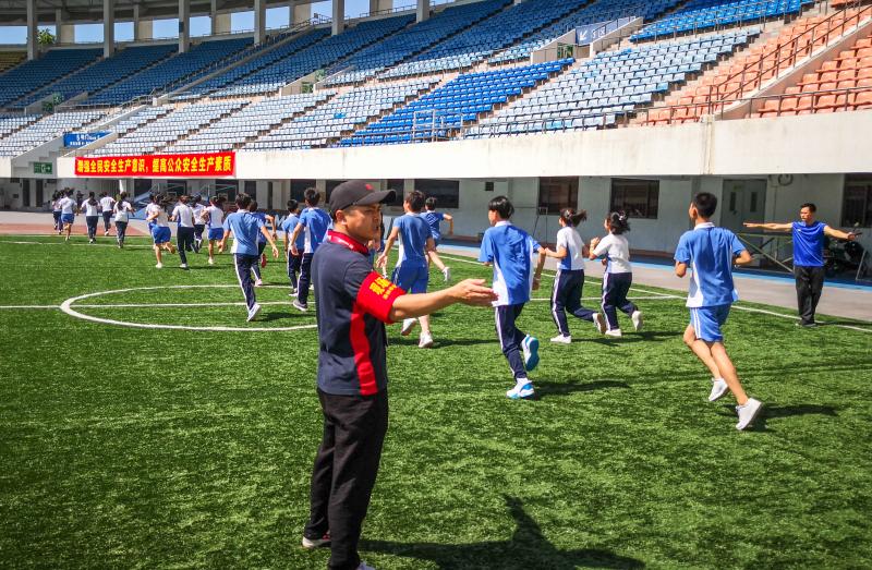 為確保本次演練到位,體育中心特別邀請了羅湖中學初中部的同學參加演練,讓孩子們有一次親身感受火災疏散的經歷,了解火災疏散的流程,提升同學們的自救意識和技能。15:00,體育中心體育場,隨著一聲警報聲的響起各工作組在體育場播音系統指揮下第一時間到達指定位置,搶險求援組迅速開展消防滅火,警戒疏散組指揮在場地和看臺的學生快速、有序從就近路線撤離至廣場安全區域,并尋找是否有遺漏的學生。師生到達廣場安全區域,各班班主任清點學生人數,確保學生無一人滯留,并層層上報。不到9分鐘時間,600多名羅湖中學初中部師生全部安全撤離。整個演習過程流程清晰,信息傳達準確、及時,疏散指揮反應快速,未發生學生擁擠、無序的安全隱患,演習效果理想。